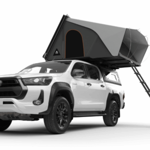 - Set up is as simple as unclamping the cover, lifting it up, and folding out the tent via a pull.